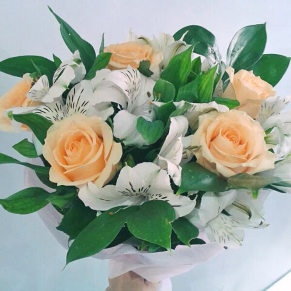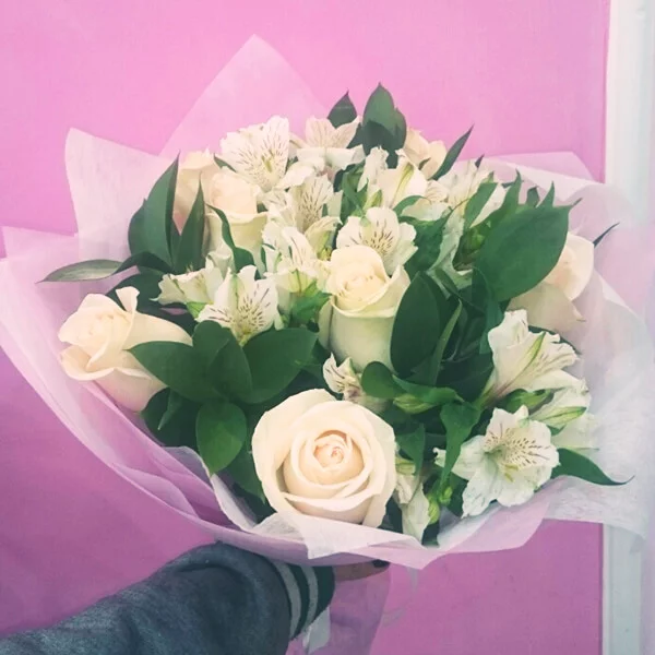 ОТЗЫВЫ О БУКЕТЕ « Жемчужное ожерелье - букет из белых альстромерий и роз»